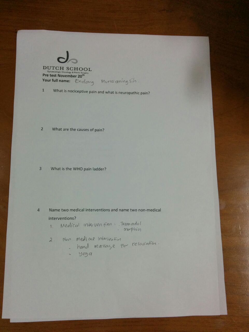 Vandaag zijn de deelnemers de afdeling opgaan om gericht te zoeken naar informatie over het symptoom pijn. Ze zijn in gesprek gegaan met patiënten, hebben gezocht naar interventies in dossiers engekeken welke protocollen en richtlijnen er beschikbaar zijn. Wij hebben ieder een groep begeleid.